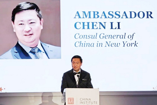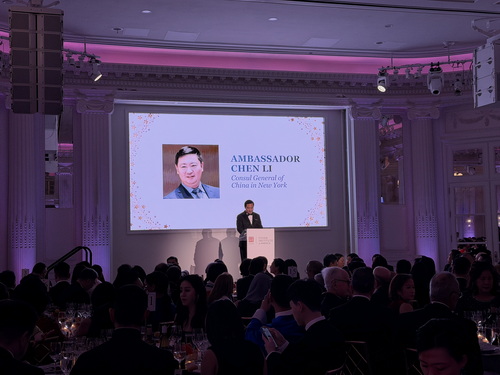 2025年10月23日,驻纽约总领事陈立出席华美协进社“青云奖”颁奖晚宴并致辞。