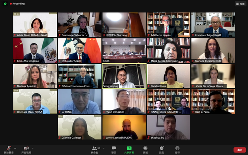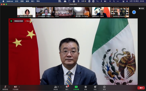 2022年5月11日,驻墨西哥大使祝青桥在线出席中国现代国际关系研究院和墨西哥国立自治大学联合举办的“中墨发展互鉴暨中墨建交50周年”国际研讨会并致辞。墨西哥驻华大使施雅德、中国现代国际关系研究院院长袁鹏、墨西哥国立自治大学副校长瓦伦西亚及两国专家学者等出席活动。