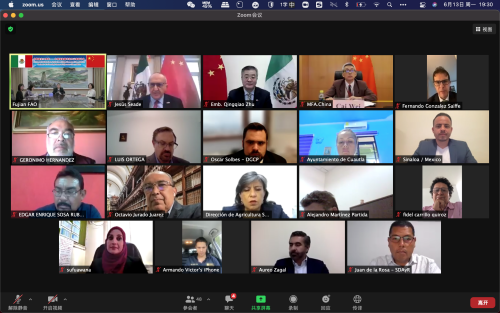 2022年6月13日,驻墨西哥大使祝青桥在线出席中墨福建菌草技术云端研讨会并致辞。墨驻华大使施雅德、墨外交部亚太司司长冈萨雷斯、中国外交部拉美司司长蔡伟、福建省外办主任陈出新等出席活动。
