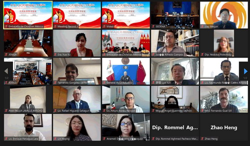 旅墨华侨华人、中资企业代表们、留学生纷纷通过视频会议平台表达对祖国73年来取得举世瞩目成就的骄傲自豪之情,为中墨友谊点赞喝彩,表示将更加信心满怀地奋进新征程、建功新时代,以实际行动迎接党的二十大胜利召开,为推动中墨关系发展添砖加瓦,为实现中华民族伟大复兴作出积极贡献。
