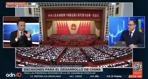 2023年3月6日,驻墨西哥大使张润接受墨西哥阿兹特克电视台ADN40新闻频道知名主持人卡洛斯·莫塔的直播专访。专访实录如下: