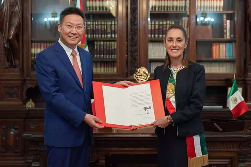 2025年9月8日,驻墨西哥大使陈道江向墨西哥合众国总统辛鲍姆递交国书。