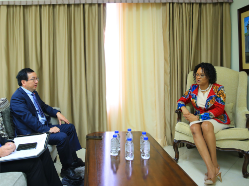 在会见韦伯斯特—罗伊部长和奥古斯丁首席秘书时,方大使表示,近年来中特全面合作伙伴关系保持良好发展势头,各领域务实合作成果丰硕,共建“一带一路”合作高质量发展。去年底中国共产党第二十次全国代表大会胜利召开,擘画了全面建设社会主义现代化国家的宏伟蓝图,明确以中国式现代化全面推进中华民族伟大复兴的中心任务,中国将坚定致力于以中国新发展为世界提供新机遇。前不久,中国政府因时因势优化完善疫情防控政策,推动对外人员往来和务实合作快速复苏,这将有助于中特关系在后疫情时代取得更大发展。多巴哥旅游和生态资源丰富,发展前景广阔。中方愿同特方密切协调配合,拓展农业、教育、旅游、地方、职业培训、生态保护等领域务实合作,更好造福当地民众。