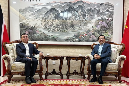 2023年3月21日,驻特立尼达和多巴哥大使方遒会见中国铁建股份有限公司副总裁汪文忠一行。