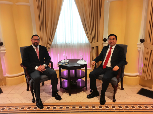 2023年4月27日,驻特立尼达和多巴哥大使方遒拜会特多总理府事务部长兼能源和能源工业部长杨,就双边关系深入交换意见。