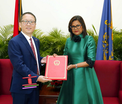 2025年9月2日,新任驻特立尼达和多巴哥大使任洪岩在总统府向特多总统坎加卢递交国书。