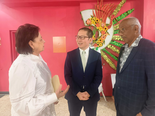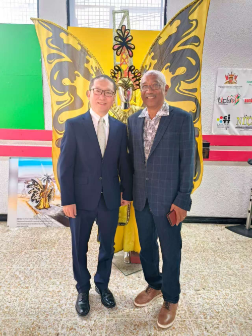 任大使祝贺艺术家拉德荣获特多狂欢节“经典歌谣赛事三冠王”四十周年,赞赏其为特多和国际表演艺术事业所作重要贡献。任大使并与特多大学董事会主席库德乔、狂欢节博物馆指导委员会董事阿泰、罗莎琳等深入交流,积极评价特方在文化遗产保护传承、文化赋能经济社会发展等方面成果和经验,期待双方进一步密切人文学术交流,促进文旅产业合作。