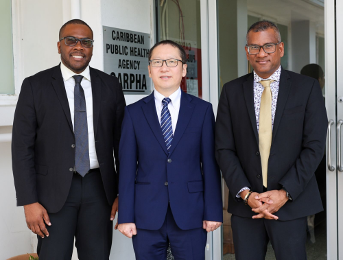 2026年1月27日,驻特立尼达和多巴哥大使任洪岩赴加勒比公共卫生署参访交流,公共卫生署合作事务司长萨米、疾病监测、预防和控制司长考克斯陪同,双方就深化中加卫生健康合作交换意见。