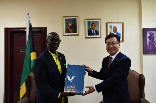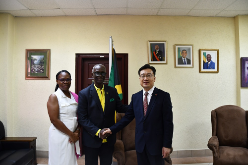 2025年10月17日,驻牙买加大使王锦峰拜会牙地方政府和农村发展部长麦肯齐。该部常秘亨利-马丁等在座。