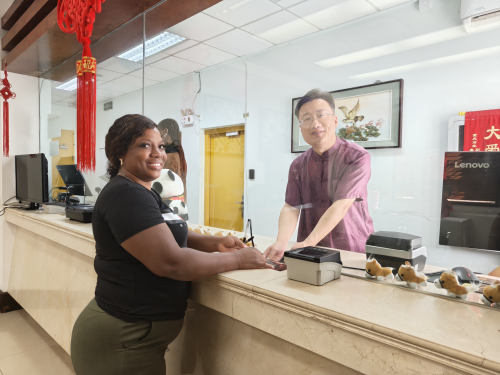 王大使亲身参与领事接案,同到馆办理领事证件的当地民众及华侨华人亲切交谈,并征询对使馆领事服务的意见建议。