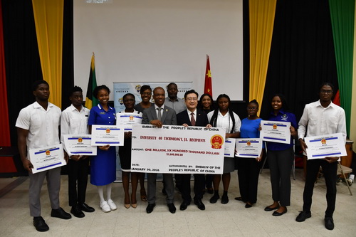 2026年1月30日,驻牙买加大使王锦峰出席牙买加科技大学2026年度“中国大使奖学金”颁奖仪式并致辞。牙买加科技大学校长布朗、首席技术官麦克莱农等出席,获奖学生、在校师生等五十余人参加。