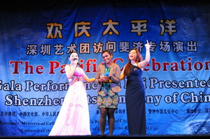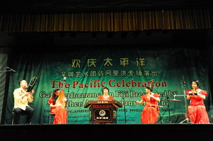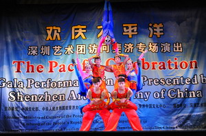 2016年9月22日晚,广东省深圳艺术团在斐济首都苏瓦举行“欢庆太平洋”专场文艺演出,中国驻斐济大使张平、斐济渔业部长科罗伊拉维萨乌以及在斐中资企业、华侨华人等近700人观看了演出。