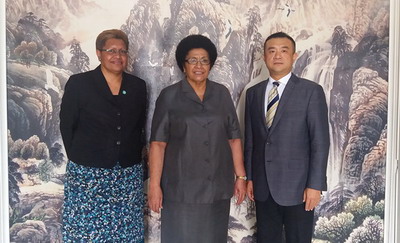 2017年11月27日,驻斐济使馆临时代办谷雨为即将赴华出席“中国共产党与世界政党高层对话会”的斐济议长卢维尼送行。