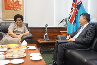 2018年2月7日,驻斐济大使钱波到任拜会斐济议会议长卢维尼,双方就发展中斐关系和加强两国立法机构合作交换意见。