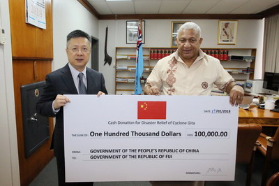 钱大使表示,在获悉斐东南部分岛屿遭受热带飓风侵袭,造成房屋和农作物严重受损后,中国使馆十分关切,决定向斐方提供10万斐元紧急现金捐款,用于当地救灾。此举充分体现了中斐“相互尊重、共同发展”的战略伙伴关系和两国人民之间的深厚情谊,中方真诚希望受灾岛民早日重建家园,恢复正常生活。