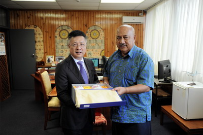 2018年2月22日,驻斐济大使钱波到任拜会斐济国家安全与国防部长昆布安博拉,双方就中斐关系与两军、执法交往合作等交换意见。