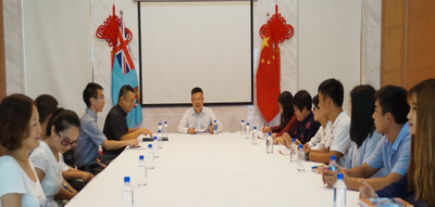 2018年2月28日,驻斐济大使钱波邀请在斐济南太大学孔子学院及逸仙学校任教的公派汉语教师来使馆新春茶话,听取大家介绍在斐工作的情况及面临的困难。