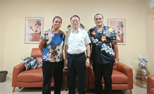 2025年6月16日,驻瑙鲁大使吕进与瑙鲁公共卫生部常秘德特纳莫工作交流。