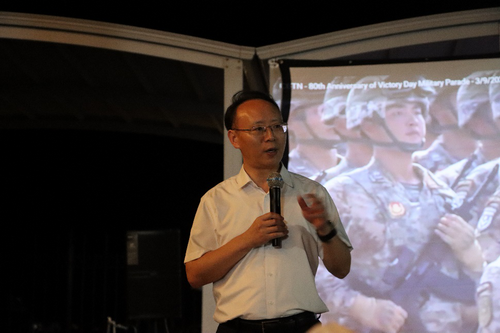 2025年9月12日,驻瑙鲁使馆举行纪念中国人民抗日战争暨世界反法西斯战争胜利80周年电影招待会。驻瑙鲁大使吕进邀请瑙鲁议长斯蒂芬、体育部长杰里迈亚、公共卫生部长伊欧埃及瑙中友协、瑙鲁青年协会、侨界、中企代表等80余人观看影片《百团大战》,欣赏“9·3”阅兵精彩片段。