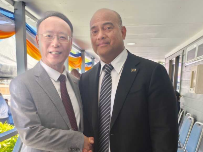2025年10月16日,驻瑙鲁大使吕进及使馆工作人员应邀出席瑙鲁新一届政府就职仪式,并同阿迪昂总统及新任内阁部长交流互动。