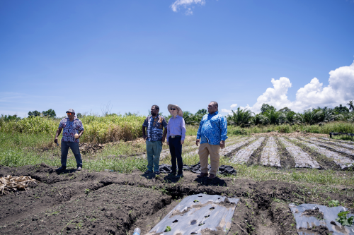 2026年2月17日,农历正月初一,驻所罗门群岛大使蔡蔚鸣赴所罗门群岛首都霍尼亚拉及周边地区主要农业基础设施开展实地调研,所农业部长瓦西陪同。蔡大使深入田间地头,与农场负责人和技术人员亲切交流,详细了解农作物种植养护、加工流程、经济效益等情况。