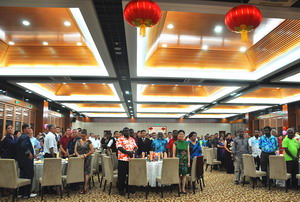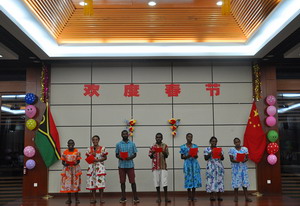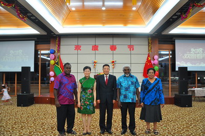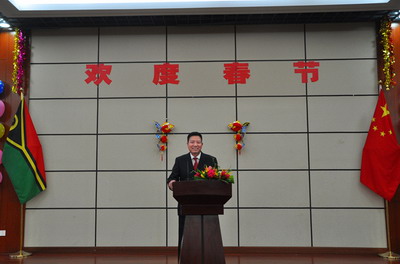 2018年2月13日,驻瓦努阿图大使刘全夫妇在瓦国家会议中心举行新春招待会。瓦代总理乔·纳图曼、议长埃斯蒙·赛蒙、瓦政府多位部长、议员、各国驻瓦使节、华侨华人、中资机构代表、援瓦专家和各界友好人士等200余人出席。