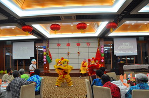 | 招待会现场 | 现场舞狮表演 |