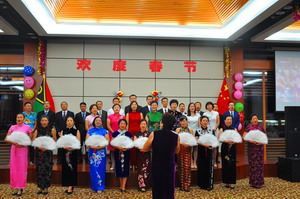 招待会气氛热烈,使馆工作人员、华侨华人、中资机构代表、孔子课堂学员为来宾送上精彩演出。来宾们互致新春祝福,共祝中瓦友谊万古长青。