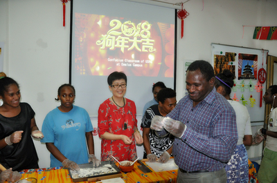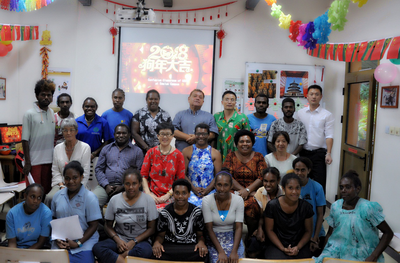 2018年2月19日,驻瓦努阿图大使夫人孙霞应邀出席南太平洋大学埃马路斯校区孔子课堂庆祝狗年新春活动,活动由孔子课堂汉语教师组织,校方负责人鲁本·马克沃德、汉语学生、教师代表等30余人出席。