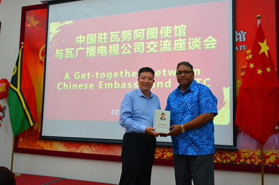 VBTC董事会主席、总理府代理总司长尼布迪科感谢刘大使的盛情邀请和使馆的周到安排,高度称赞中方长期以来对瓦的大力帮助,特别是为瓦举办太平洋小型运动会提供的全方位支持。尼表示,瓦中双方已在各个领域展开务实合作,希进一步强化新闻媒体交流,增进两国人民之间的理解与友谊。