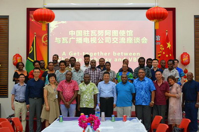 2018年3月6日,驻瓦努阿图大使刘全举办媒体交流座谈会。瓦国家广播电视公司(VBTC)董事会成员、首席执行官、各部门代表近30人出席活动。