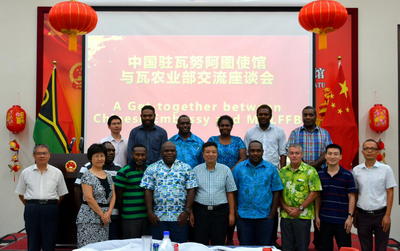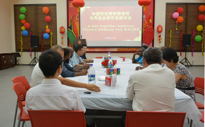 2018年3月16日,驻瓦努阿图使馆举办中瓦农业合作座谈会。驻瓦努阿图大使刘全和瓦农业部官员出席活动。
