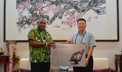 刘大使向酋长理事会赠送电脑