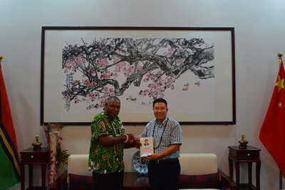 2018年3月23日,驻瓦努阿图大使刘全会见瓦全国酋长理事会主席特苏普,并与理事会委员进行交流座谈。