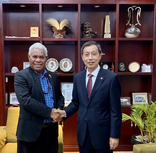 2022年8月31日,驻瓦努阿图大使李名刚到任拜会瓦看守总理拉夫曼。