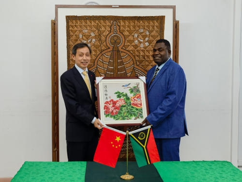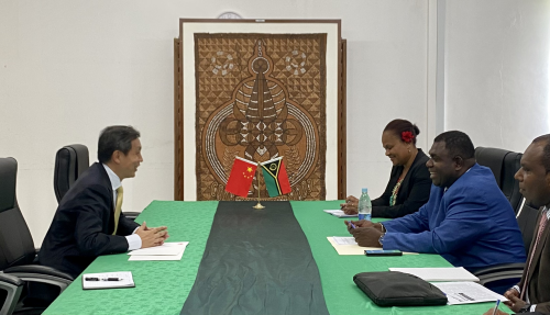 2022年11月10日,驻瓦努阿图大使李名刚拜会瓦新任议长西米恩。瓦议会第三副议长金、第四副议长纳珀特等出席。