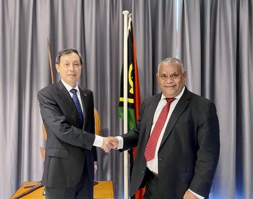 2022年11月11日,驻瓦努阿图大使李名刚拜会瓦外长纳帕特。双方就进一步推动中瓦关系发展深入交流。