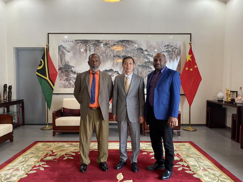 2023年1月27日,驻瓦努阿图大使李名刚会见瓦努阿图马兰帕省省长亚伯、国家议员安迪等,双方就加强中瓦地方交流合作深入交换意见。