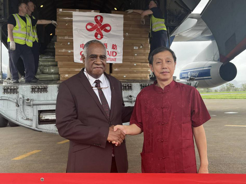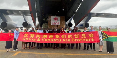 2023年3月16日,带着中国政府和人民的情谊,中方救援物资抵达瓦努阿图首都维拉港。驻瓦努阿图大使李名刚和瓦总理卡尔萨考等出席交接仪式。
