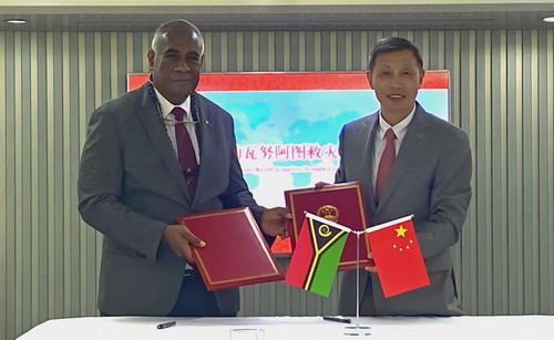 2023年4月28日,中国政府援助瓦努阿图的第二批救灾物资通过海运抵达维拉港。瓦总理卡尔萨考、卫生部长马赫、青体部长内特乌内、驻瓦努阿图大使李名刚等出席物资交接仪式。