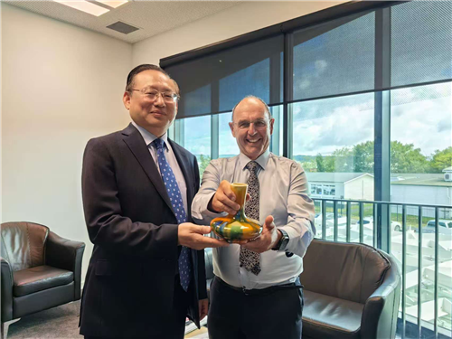 陈总领事祝贺富内尔履新,宣介中国共产党二十届四中全会精神并介绍两国关系最新发展情况,赞赏陶波立足友城关系加强对华交流,表示愿同其携手拓展中新地方合作新机遇,为双边关系健康稳定发展注入新的强劲动力。