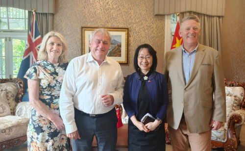 何总领事祝贺梅杰市长再次当选,感谢市长和市议会为赵乐际委员长代表团访问克市所做的热情周到安排,以及对促进中新友好关系的积极参与和坚定支持。并表示,赵乐际委员长亲自为路易·艾黎纪念馆揭牌,意义重大。总领馆愿与市议会继续携手努力,为深化中新各领域合作交流作出更大贡献。