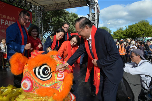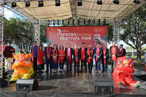 2026年2月6日,驻奥克兰总领事陈世杰出席2026年奥克兰春节庙会开幕式并致辞。新西兰国会议员李志妍、张隽浩、陆楠、许南,韩国驻奥克兰总领事金洪基等嘉宾出席,与当地华侨华人及各界友人200余人共贺新春。
