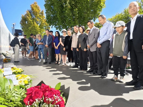 2026年2月22日,克赖斯特彻奇市地震15周年遇难者追思仪式隆重举办,驻克赖斯特彻奇总领事何颖应邀出席,与克市市长菲尔·梅杰、当地近五百名民众共同悼念2011年地震遇难者。