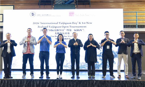 2026年3月21日,驻奥克兰总领事陈世杰出席2026年国际太极拳日暨首届新西兰太极拳公开锦标赛开幕式。新西兰国会议员张隽浩、陆楠,联合国教科文组织文化专员海库拉,以及新西兰当地太极拳爱好者共约400人参加。