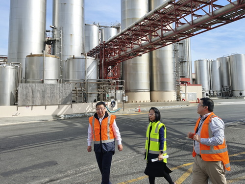 何总领事一行先后参观黄油生产线、乳铁蛋白生产车间等,详细听取公司总经理李志强关于企业生产经营、产品布局及发展规划等情况介绍。