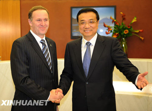 2009年11月2日,中国国务院副总理李克强在新西兰首都惠灵顿会见了新西兰总理约翰·基,双方在诚挚友好的气氛中就双边关系和共同关心的问题深入交换了看法。
