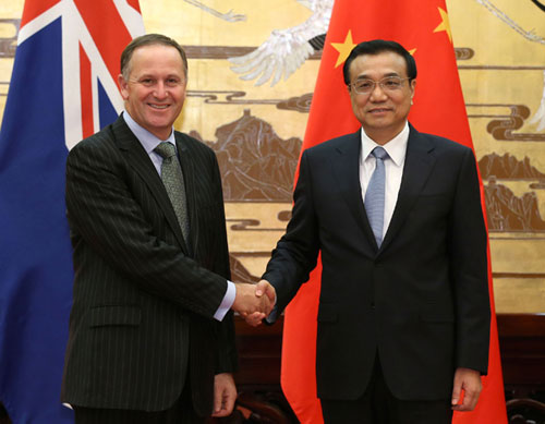 2014年3月18日下午,国务院总理李克强在人民大会堂同来华进行工作访问的新西兰总理约翰·基举行会谈。