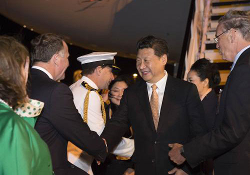 习近平是在结束对澳大利亚的国事访问后抵达奥克兰的。离开悉尼时,澳大利亚总督代表、总理代表、新南威尔士州州督代表等到机场送行。