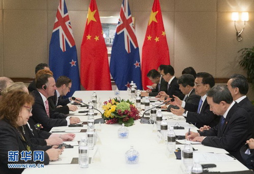 李克强指出,中新经济优势互补,合作潜力巨大。希望双方用好相关合作机制平台,加强政策对话协调,探讨推进自贸协定升级谈判。中方鼓励中国企业参与新西兰交通和灾后重建项目等基础设施建设,希望新方提供相关准入便利。中方愿同新方加强人文、两军对话交流和执法合作,加强在全球和区域多边机制中的沟通协调,积极开辟合作新领域,造福两国人民。